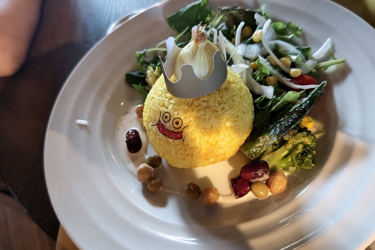 For those craving something savory, the スライムのカレー辛口 (Slime Curry Spicy) will tickle your taste buds with its bold flavors and fiery spice. The curry is hearty and satisfying, with just the right amount of heat to keep you coming back for more. Pair it with a スライムのワッフルカフェラテ (Slime Waffle Café Latte), which combines the rich, smooth flavors of coffee with a hint of sweetness from the waffle. It's the ideal drink to sip on while enjoying the laid-back vibe of the café.